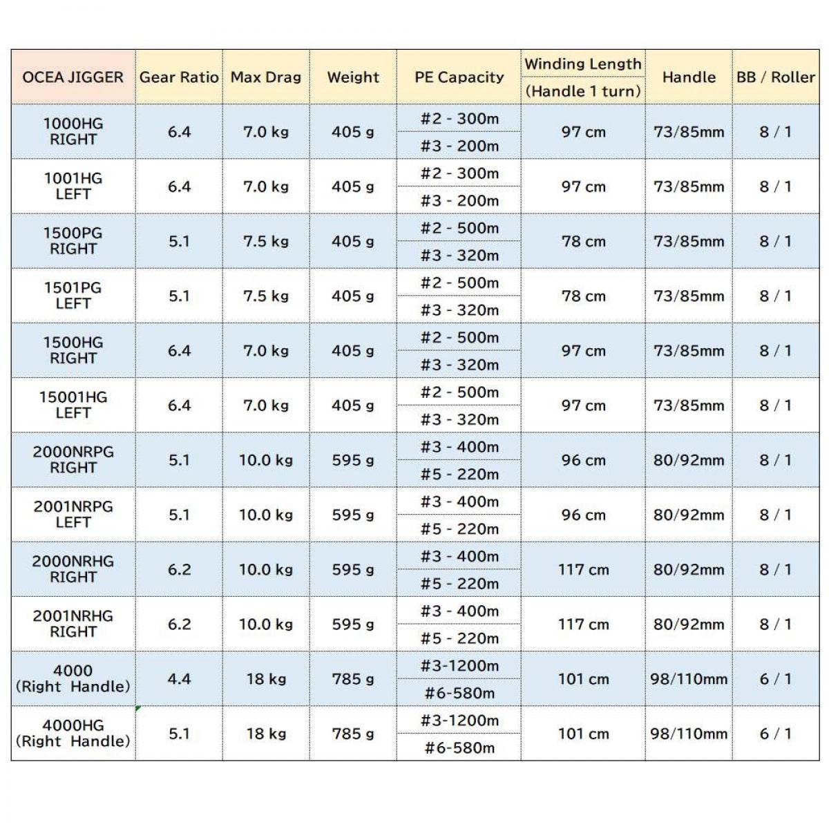 | Product Model | 17 OCEA JIGGER 2001NR-PG |