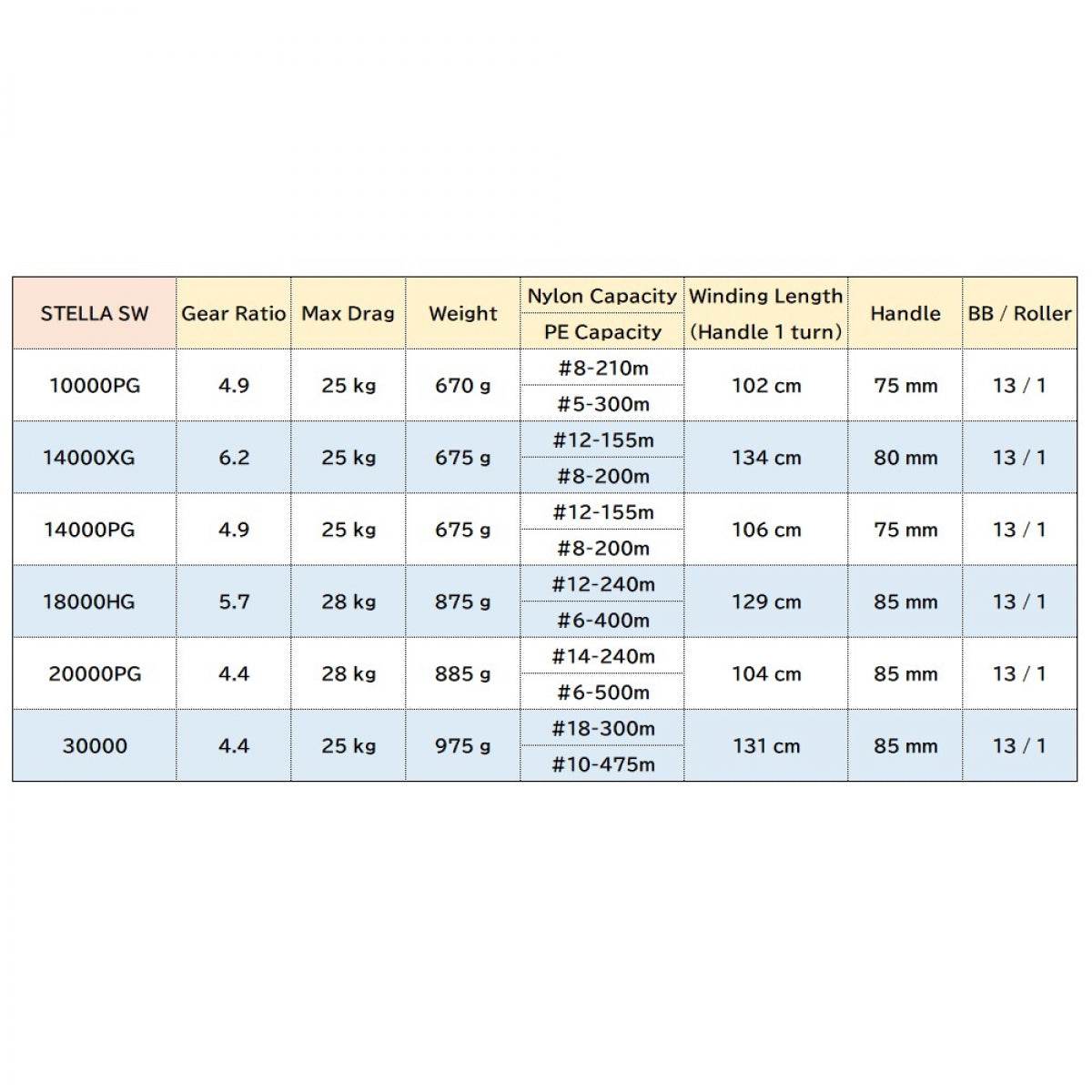 Gear : 4.9 Max Drag : 25kg BB : 13/1