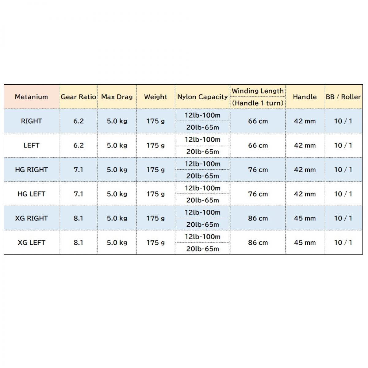 Gear : 6.2 Max Drag : 5kg BB : 10/1